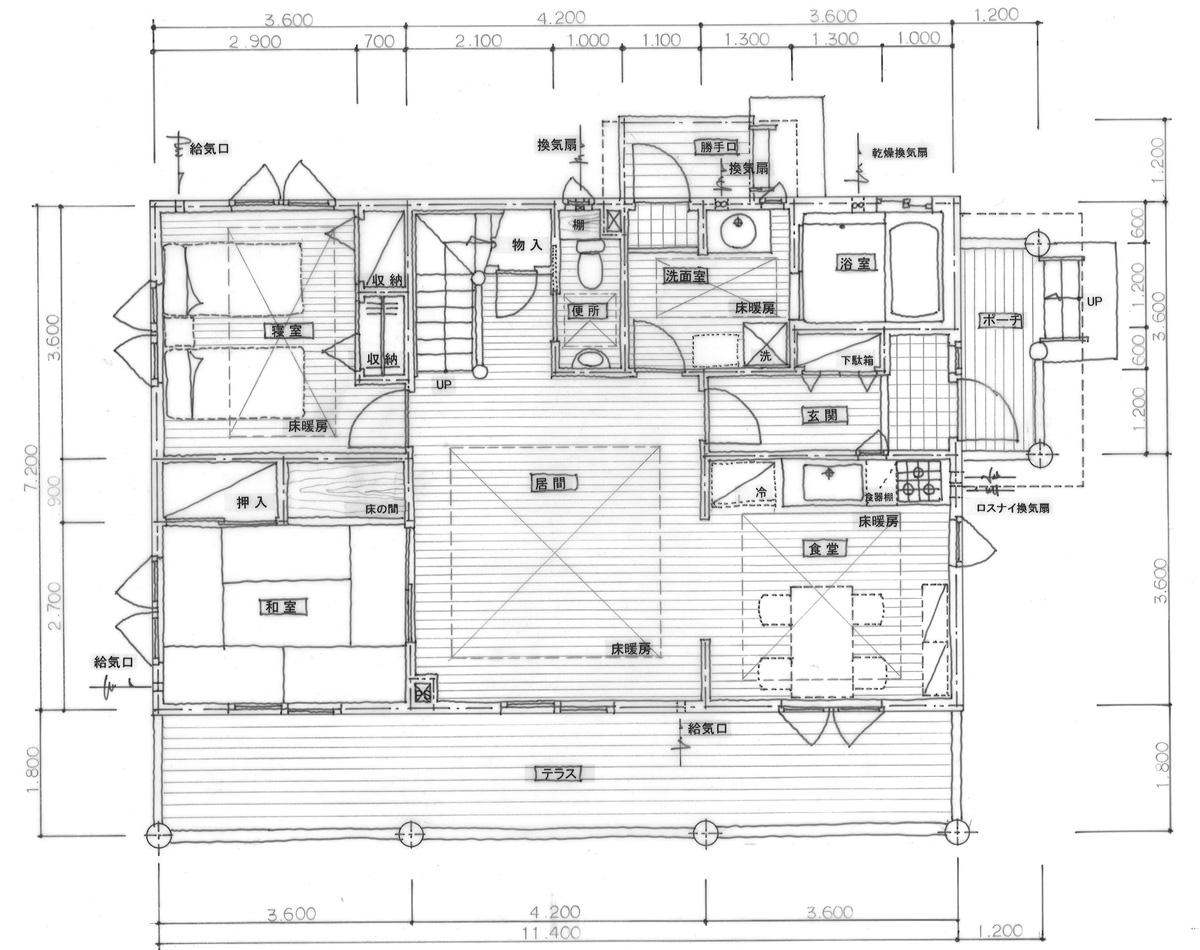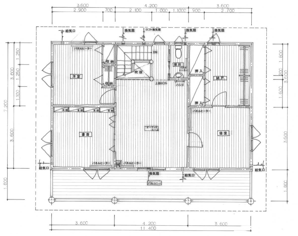 | ・ | 構 法 | : | 枠組壁構法 (ツーバイフォー構法) +ログ ログ部分=棟木・母屋 玄関柱及び小屋組・ベランダ柱・梁・手すり |